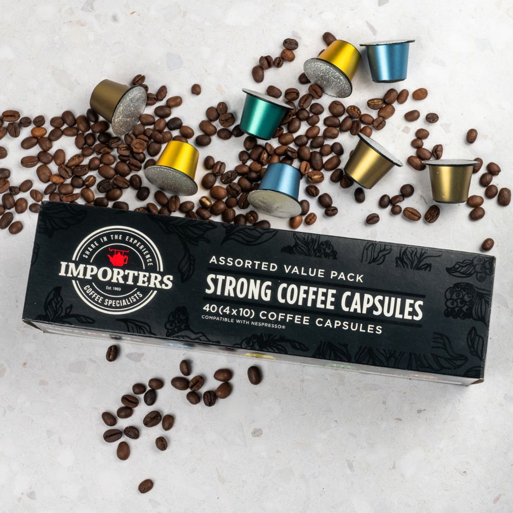 The Importers Bulk Special Variety comes with 4 delicious blends (10 of each), a total of 40 Nespresso compatible coffee capsules.