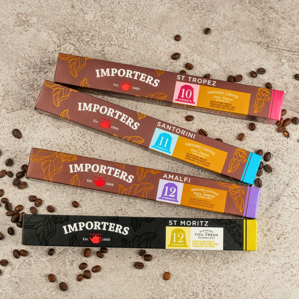 The Importers coffee capsules have been thoroughly tested and carefully manufactured to be fully compatible with ALL Nespresso® and Caffeluxe machines including but not limited to