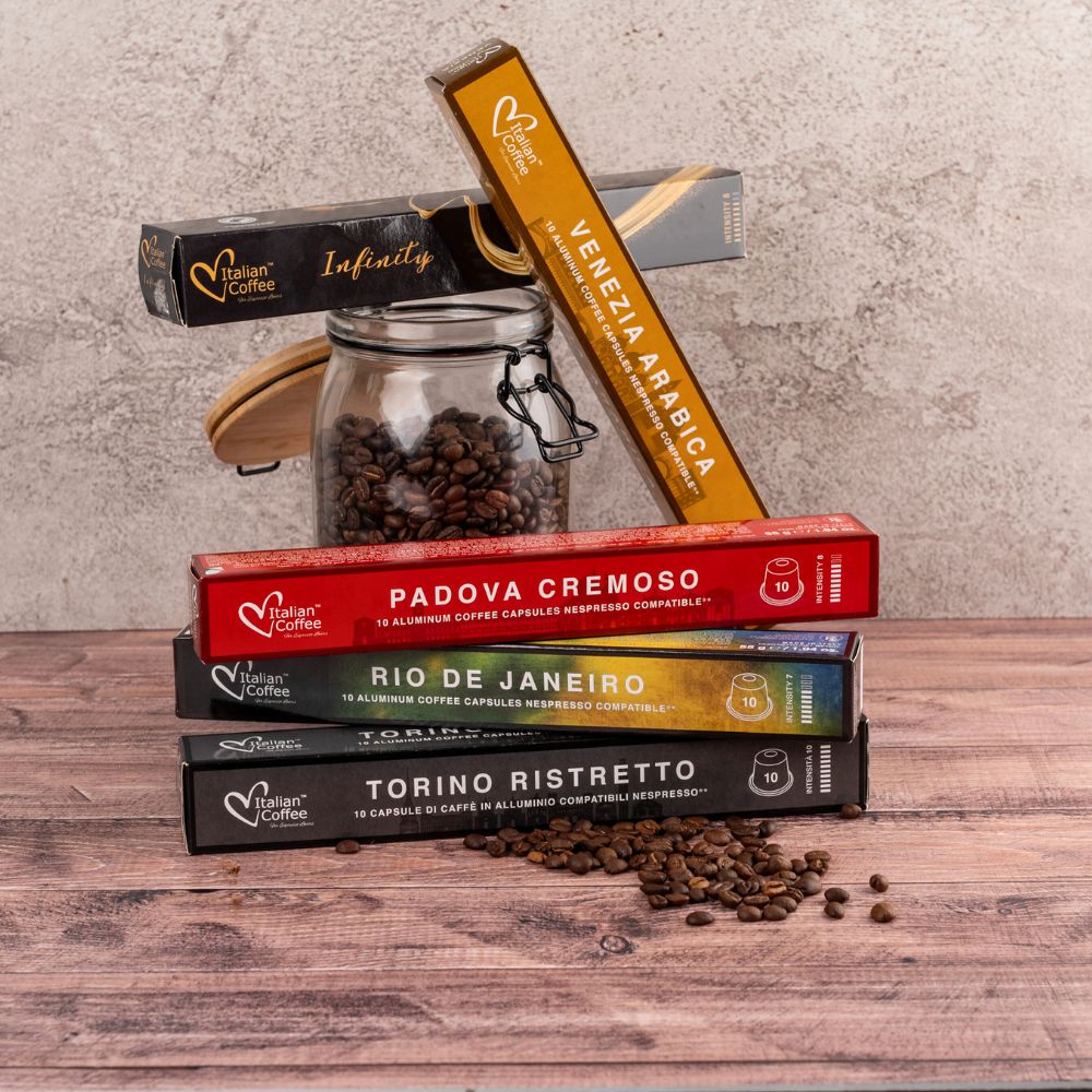 With 10 pods of each blend, you'll have the opportunity to explore, savour, and share these exceptional coffees with friends and family. Whether you're a seasoned coffee connoisseur or an adventurous coffee enthusiast, our Italian Aluminium Variety Pack (No Decaffe) has something for everyone. Start your coffee adventure today!